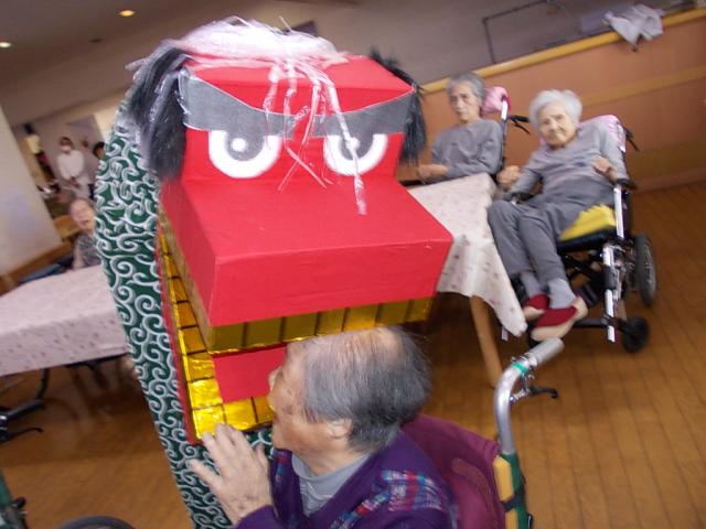 1月の誕生会では獅子舞いが登場!利用者様の健康祈願をお願いしました。
